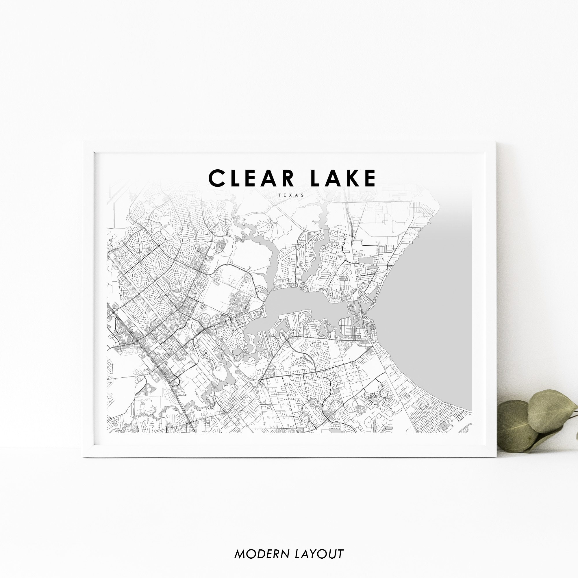 Clear Lake Area TX Map Print, Texas USA Map Art Poster, Houston